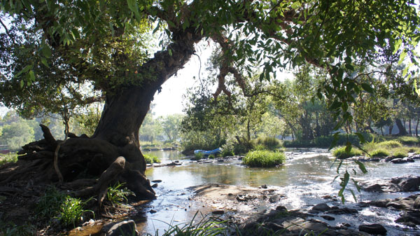 A tó mellett kanyargó kis ösvényen – 20-30 perces séta után a dzsungelben – eltölthetünk némi időt a banjan tree árnyékában – kis szerencsével az éppen aktuális babával (indiai szent ember) is találkozhatunk.