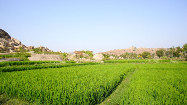 Részben a fentiek, részben pedig egy nagyszerű, rizsföldek melletti szállás okán, a folyó túl partján, az Anegondi városrészbe fogunk megszállni, mely a térség fővárosa volt Hampi előtt.